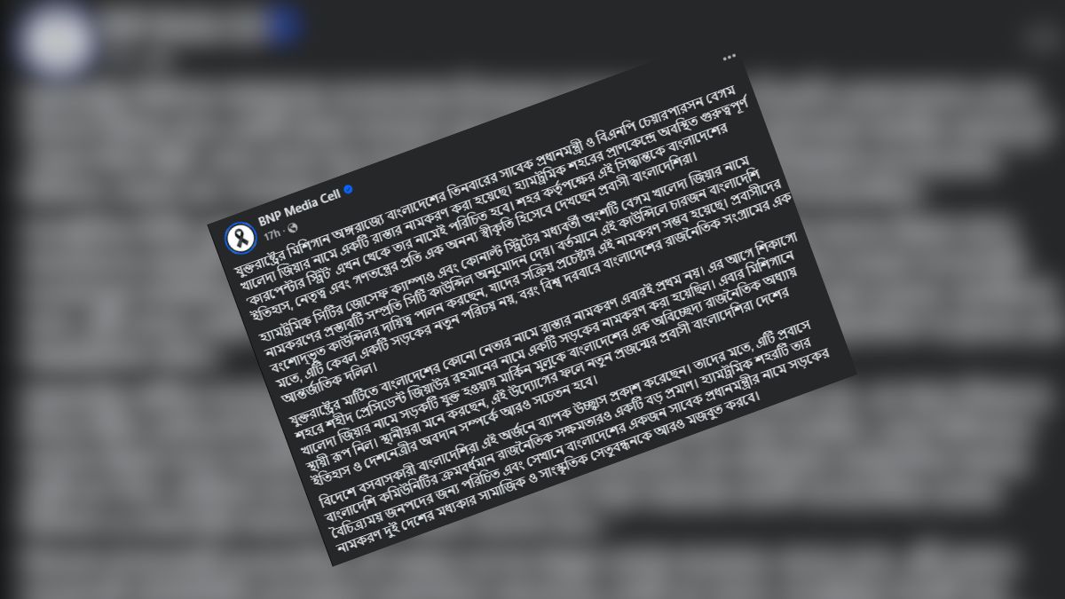 যুক্তরাষ্ট্রের খালেদা জিয়ার নামে সড়ক, জানাল মিডিয়া সেল