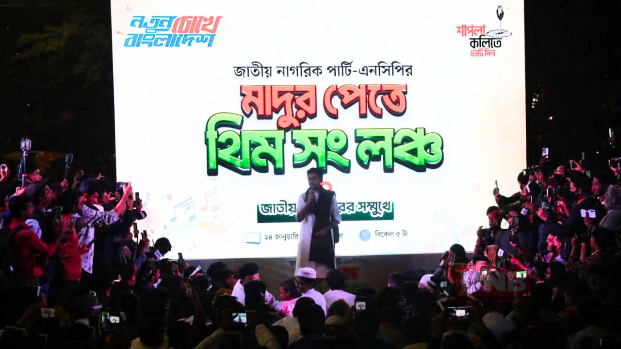 ফাইভ স্টার হোটেলের চাকচিক্য নেই, ছিল না কোনো তারকার সমাগম। রাজধানীর শাহবাগে জাতীয় জাদুঘরের সামনের রাস্তায় সাধারণ মাদুর পেতে এক ভিন্নধর্মী আয়োজনের মধ্য দিয়ে নির্বাচনী ‘থিম সং’ উদ্বোধন করেছে জাতীয় নাগরিক পার্টি (এনসিপি)।