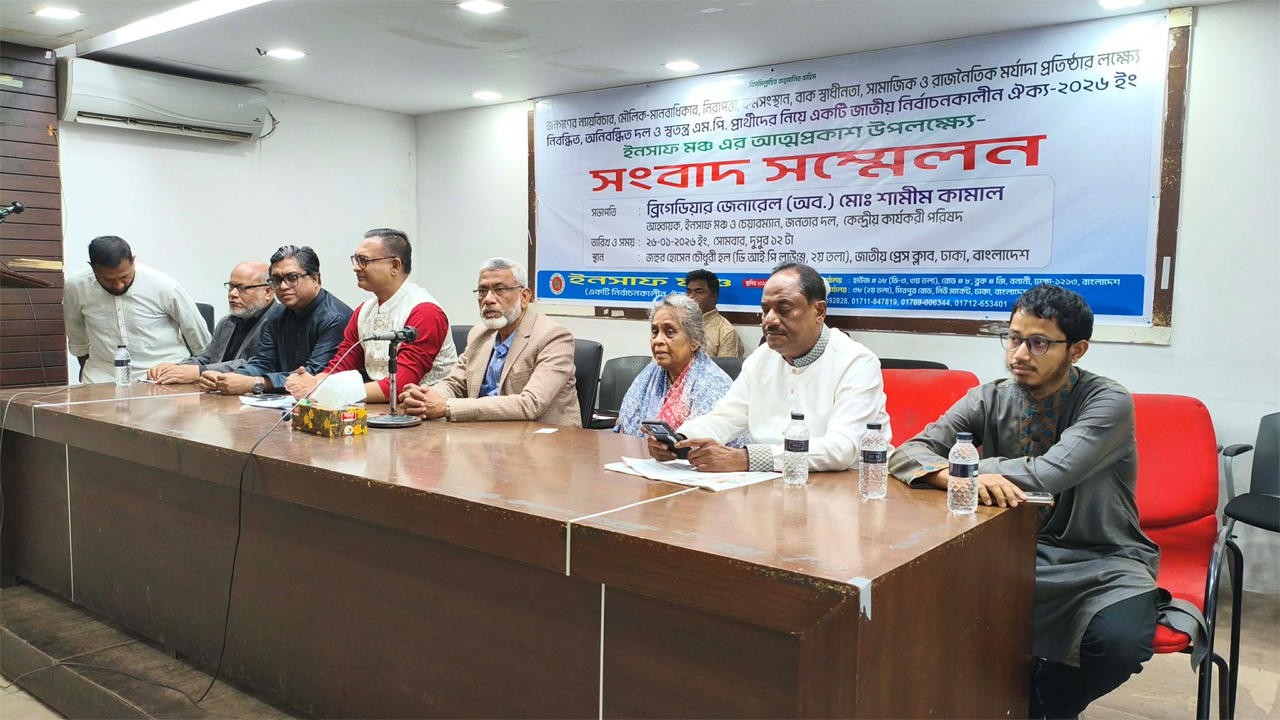 দেশের চলমান রাজনৈতিক ও অর্থনৈতিক সংকটের প্রেক্ষাপটে জনগণের অধিকার পুনরুদ্ধার এবং ন্যায়ভিত্তিক রাষ্ট্রব্যবস্থা প্রতিষ্ঠার অঙ্গীকার নিয়ে আনুষ্ঠানিক আত্মপ্রকাশ করেছে নতুন রাজনৈতিক প্ল্যাটফর্ম ‘ইনসাফ মঞ্চ’।