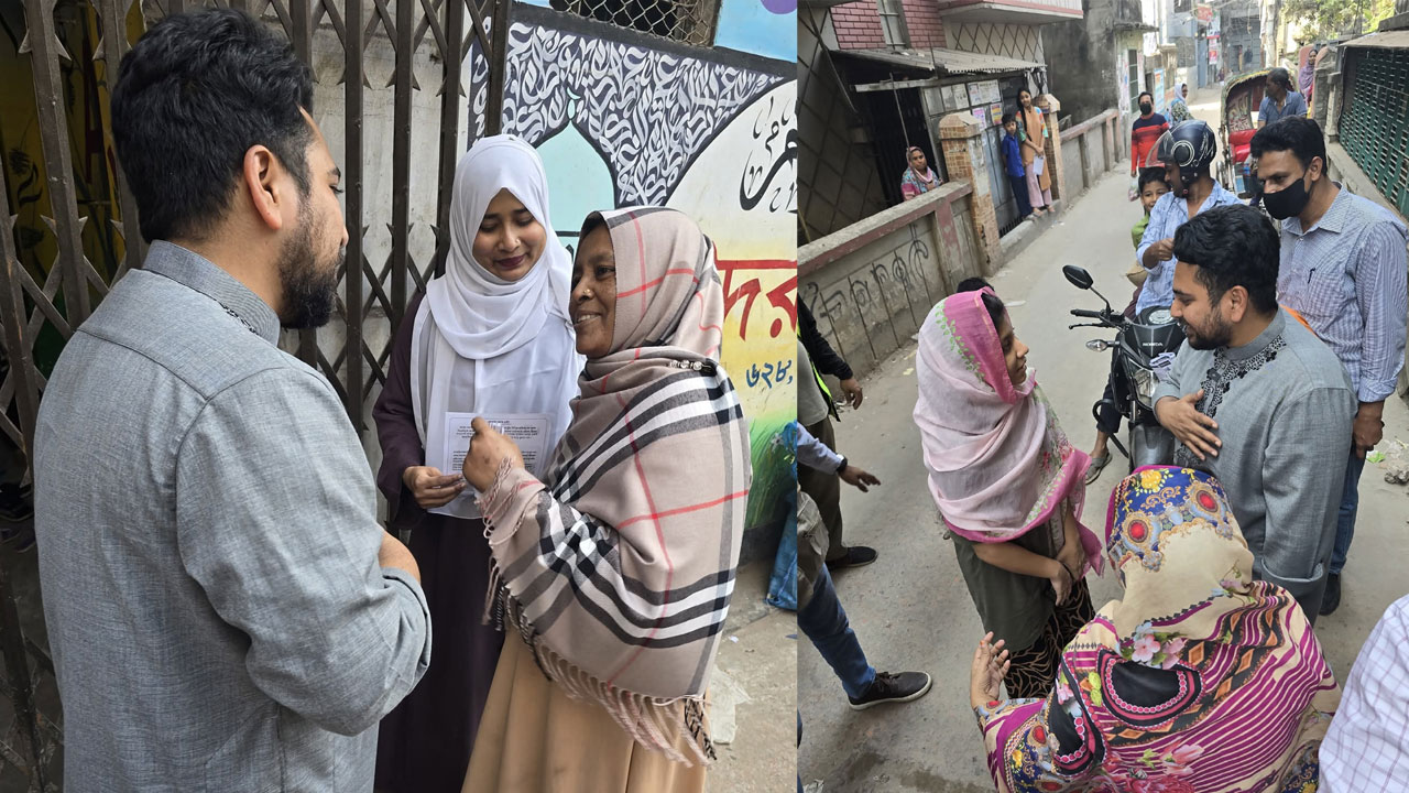 প্রচারণার এক পর্যায়ে নাহিদ ইসলাম বলেন, “শাপলা কলি মার্কা এবার ভোটটা দিয়েন। আমি এই এলাকার সন্তান। দোয়া রাখবেন।”