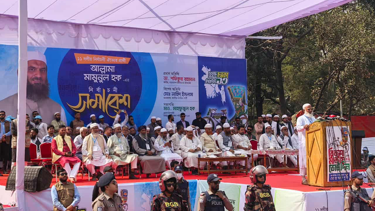 সোমবার (৯ ফেব্রুয়ারি) দুপুরে রাজধানীর মোহাম্মদপুর কেন্দ্রীয় ঈদগাহ মাঠে ঢাকা–১৩ আসনে ১১ দলীয় নির্বাচনী ঐক্যের প্রার্থী বাংলাদেশ খেলাফত মজলিসের আমির মামুনুল হকের নির্বাচনী সমাবেশে প্রধান অতিথির বক্তব্যে শফিকুর রহমান এ কথা বলেন।