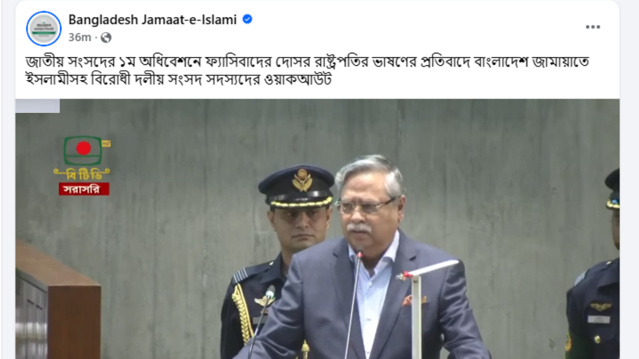 সংসদ অধিবেশন ওয়াকআউট করা জামায়াতের ফেসবুকে প্রচার হলো রাষ্ট্রপতির ভাষণ!
