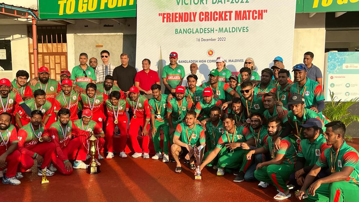 বিজয় দিবসে উপলক্ষে অনূর্ধ্ব ১৯ মালদ্বীপের জাতীয় ক্রিকেট টিমের সঙ্গে প্রবাসী বাংলাদেশিদের ক্রিকেট টিমের প্রীতি ম্যাচের আয়োজন করা হয়। দেশটির জাতীয় ক্রিকেট স্টেডিয়ামে এই ক্রিকেট ম্যাচ অনুষ্ঠিত হয়। অপরদিকে দেশটিতে বাংলাদেশি প্রবাসীদের ১৬টি ফুটবল টিম নিয়ে আয়োজন করা হয় ‘ভিউ স্পোর্টস ক্লাব ফুটবল কাপ-২০২২’। বিজয় উৎসবের খেলাটি মালদ্বীপের জাতীয় একুভেনী ক্রিকেট ও ফুটবল প্র্যাকটিস মাঠে অনুষ্ঠিত হয়।