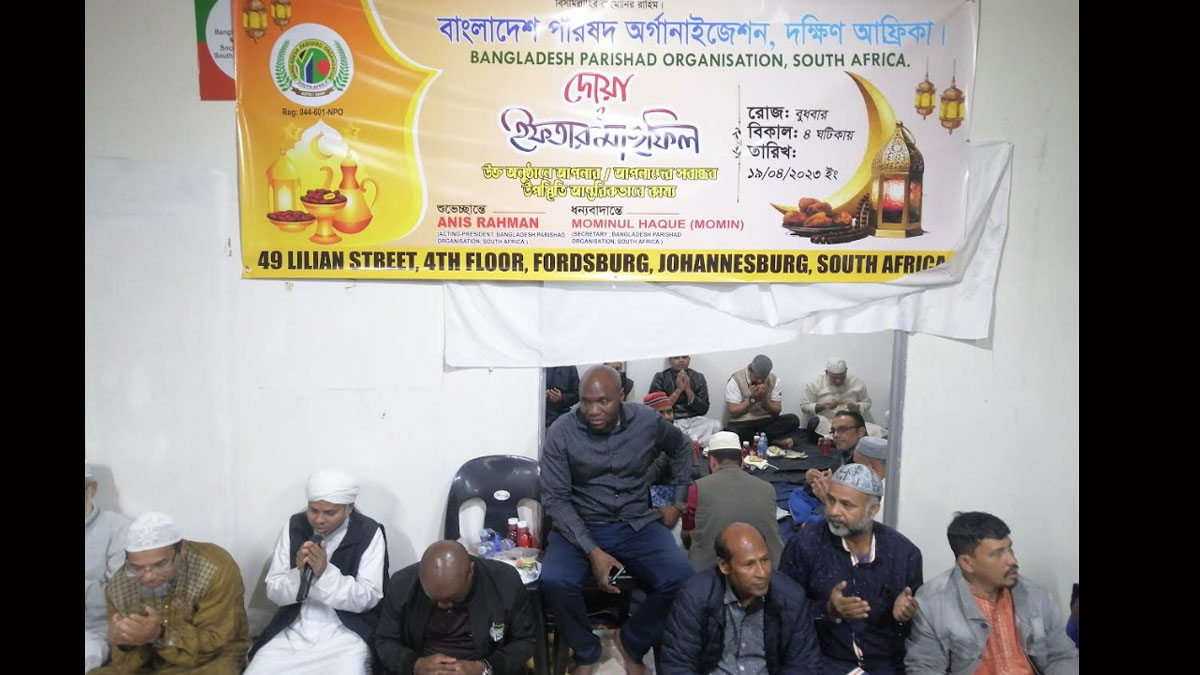 দক্ষিণ আফ্রিকার কমিউনিটি সংগঠন বাংলাদেশ পরিষদ অর্গানাইজেশনের আয়োজনে ইফতার ও দোয়া মাহফিল অনুষ্ঠিত হয়েছে।