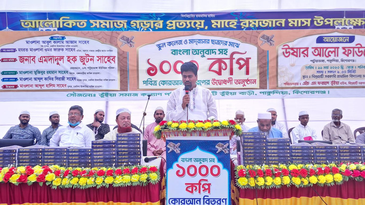 মাহে রমজান উপলক্ষে কিশোরগঞ্জের পাকুন্দিয়ায় স্কুল-কলেজ ও মাদরাসার ছাত্রদের মাঝে পবিত্র কোরআনের ১ হাজার কপি বিতরণ করা হয়েছে।