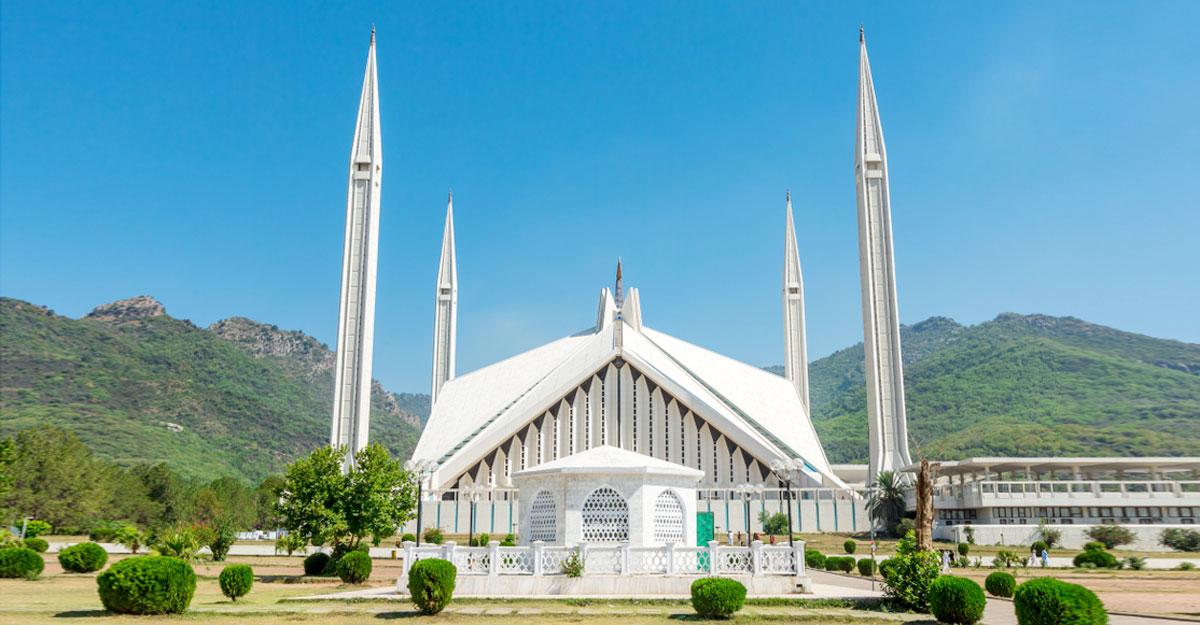 বিখ্যাত কিং ফয়সাল মসজিদ। পাকিস্তানের রাজধানী ইসলামাবাদে অবস্থিত। এটি পাকিস্তানের অন্যতম জাতীয় স্থাপনা ও ধর্মীয় প্রতীক হিসেবে গণ্য হয়। ধারণ ক্ষমতার বিচারে এটি বিশ্বের চতুর্থ বৃহত্তম মসজিদ।