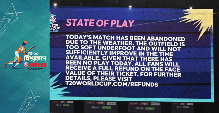 টানা বৃষ্টির কারণে আনুষ্ঠানিক ঘোষণা আসতে সময় লাগেনি। ১ পয়েন্ট নিয়েই সন্তুষ্ট থাকতে হলো দুদলকে।
