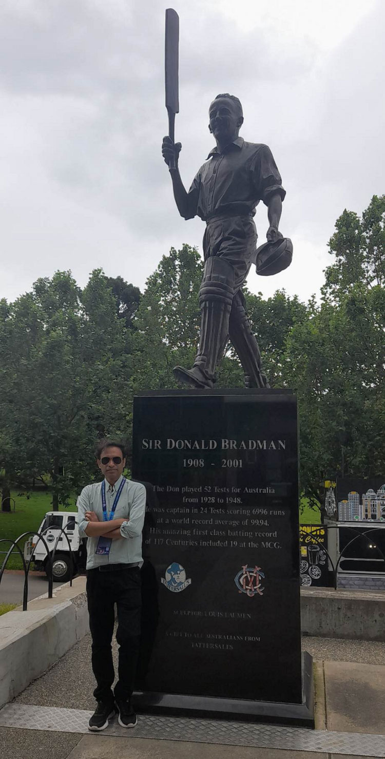 তাকে এমন করে মনে রাখার কারণটাও সংগত, যে মাঠের গল্প বলতে যাচ্ছি সেই মেলবোর্ন ক্রিকেট গ্রাউন্ডে ক্যারিয়ারের ১১৭ প্রথম শ্রেণির শতরানের ১৯টি করেছেন। মেলবোর্নের এই জগত বিখ্যাত মাঠে পা রাখলে স্যার ডনের সেই স্ট্যাচুর সঙ্গে ছবি তোলাটা প্রথম কর্তব্য। সেই কাজটা সেরে এমসিজি মানে মেলবোর্ন ক্রিকেট গ্রাউন্ডকে বুঝতে গিয়ে বৃষ্টি ভেজা দিনেও কেমন যেন ঘেমে উঠলাম। এতোটাই বিশাল যে-কূল কিনারা পাওয়ার উপায় যেন নেই!