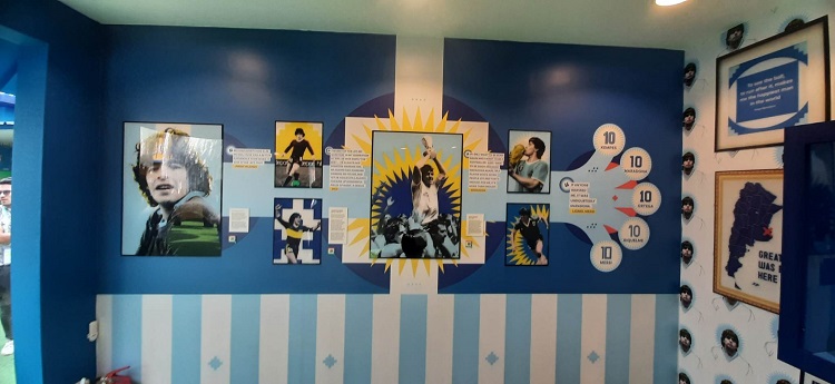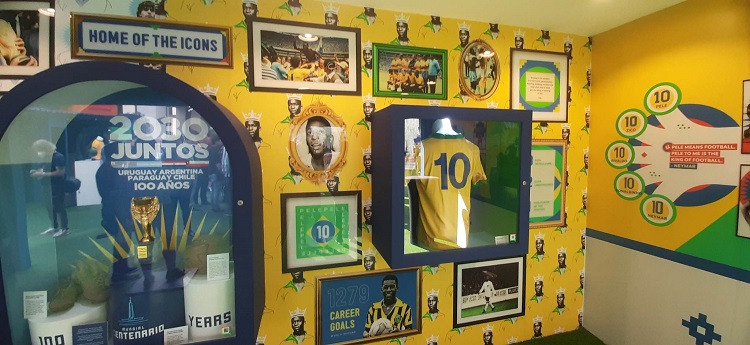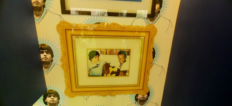 পেলে ও ম্যারাডোনা বিশ্বকাপের ট্রফি নিয়ে দাড়িয়ে রয়েছেন। দুই কিংবদন্তির দুই বোর্ডের সঙ্গে ছবি তুলতে দর্শানর্থীদের ভিড় লেগেই থাকে। সেই ছবি পেরিয়ে ভেতরে চোখ রাখলেই দেখা মিলবে দুই কিংবদন্তির অসংখ্য কীর্তি। এক পাশে রয়েছে পেলের তিন বিশ্বকাপ ট্রফি। সেই পাশের আরেক অংশে ম্যারাডোনার ৮৬ বিশ্বকাপে ট্রফিতে চুমু দেয়ার ছবি। দুই কিংবদন্তিরই রয়েছে শতাব্দীর সেরার একটি করে স্বীকৃতি। পেলের রয়েছে শতাব্দীর সেরা ফুটবলার আর ম্যারাডোনার শতাব্দীর সেরা গোল। দু’টি স্বীকৃতিরই দিন-তারিখ উল্লেখ আছে হোম অফ আইকনসের দুই পাশে। দুই কিংবদন্তির নানা রেকর্ড, বিশেষ মুহূর্ত সব কিছুই রয়েছে ছোট্ট জায়গাতে। পেলে নাকি ম্যারাডোনা সেরা, চিরকালীন এই বিতর্কের বিষয়টি হঠাৎ উবে যাবে দুই কিংবদন্তীর আলিঙ্গনের এক ছবি দেখে।