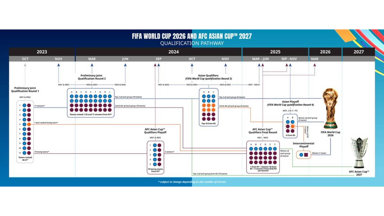 বিশ্বকাপ প্রাক-বাছাইয়ের এটিই শেষ ধাপ। এখানে আছে মোট ৯ গ্রুপ। সবশেষ গ্রুপেই অস্ট্রেলিয়া, ফিলিস্তিন এবং লেবাননের সঙ্গে আছে বাংলাদেশের নাম। গ্রুপ-এ থেকে গ্রুপ আই এই ৯টি গ্রুপের শীর্ষ দুটি করে দল মিলিয়ে মোট ১৮টি দল বিশ্বকাপ বাছাইপর্বের পরবর্তী রাউন্ডে যাবে। আর এই ১৮টি দল সরাসরি ২০২৭ সালের এশিয়ান কাপের টিকিট পাবে। বাদ পড়া ১৮টি দলের বিশ্বকাপ স্বপ্নের ইতি ঘটবে সেখানেই।