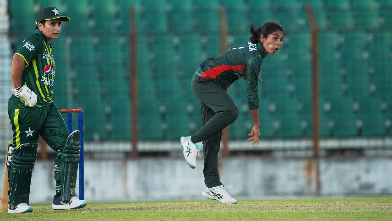 মেয়েদের জন্য লক্ষ্যটা বড়ই ছিল। শুরুতেই তাই আক্রমণাত্মক হতে চেয়েছিলেন দুই ওপেনার। সাদিয়া ইকবালের বলে ৪ দিয়ে রানের খাতা খোলেন সুমাইয়া আক্তার। কিন্তু ওই পর্যন্তই। এরপর আর রানের চাকা ঘোরাতে পারেননি। ৩ বলে ৪ রান করেই থামেন তিনি। শামীমা আর সোবহানা চেষ্টা করেছিলেন ইনিংস বড় করার। তবে সেটাও হয়নি। রানরেট ঠিক থাকলেও পাওয়ারপ্লে শেষ হতেই বিদায় নেন সোবহানা মোস্তারি। পরের ওভারেই ধাক্কা খেতে হয় বাংলাদেশকে। ৪ বলে ৩ করে আউট হন বাংলাদেশ অধিনায়ক। দলের হারটাও চোখ রাঙাতে শুরু করে।