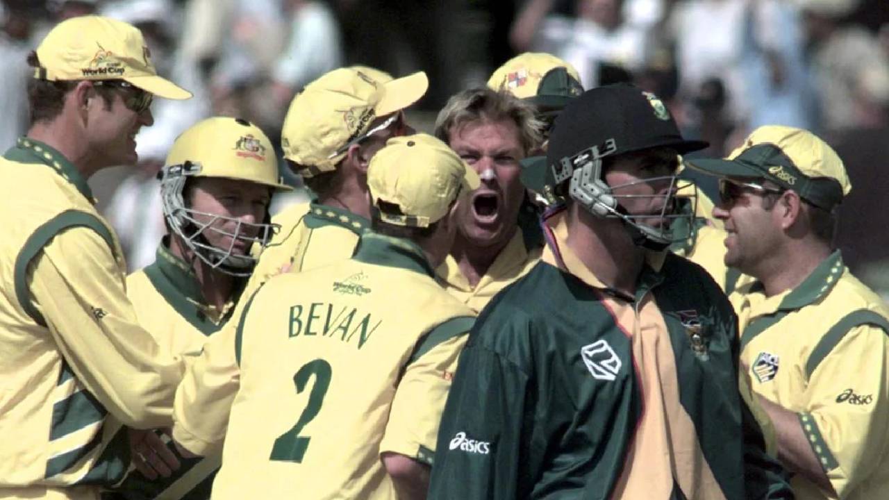 ১৯৯৯ বিশ্বকাপের দ্বিতীয় সেমিফাইনাল। অস্ট্রেলিয়ার প্রতিপক্ষ দক্ষিণ আফ্রিকা। বার্মিংহ্যামের আলো ঝলমলে দিনে আগে ব্যাটিংয়ে অজিরা। শুরু থেকেই অজিদের নাস্তানাবুদ করলেন দুই পেসার শন পোলক আর অ্যালান ডোনাল্ড। তবু স্টিভ ওয়াহর ৫৬ আর মাইকেল বেভানের ৬৫ রান মান বাঁচায় অজিদের। তবে এখানেও মিশে আছে বিতর্ক। দক্ষিণ আফ্রিকার অন্যতম সেরা ফিল্ডার হার্শেল গিবস কি করে যেন মিস করে বসেন স্টিভ ওয়াহর ক্যাচ। দুই যুগ পরে এসেও যে ক্যাচ বিষ্ময় জাগায়। শেষ পর্যন্ত শেন ওয়ার্নের ছোট ক্যামিওতে প্রোটিয়াদের সামনে টার্গেট হয় ২১৪।