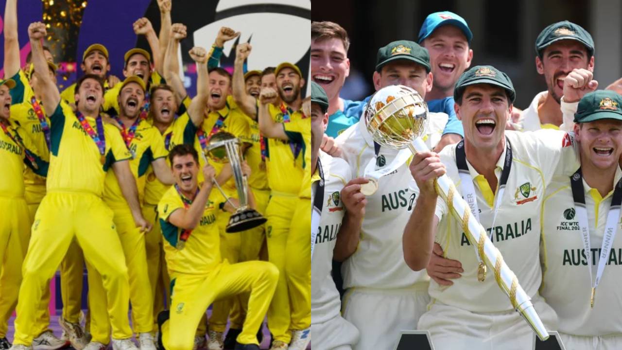 অস্ট্রেলিয়ার কাছে সুযোগ রয়েছে এক অনন্য রেকর্ড গড়ার। অজিরা মুহূর্তে বিশ্ব টেস্ট চ্যাম্পিয়নশিপ এবং এক দিনের বিশ্বকাপজয়ী দল। এই বছর যদি টি-টোয়েন্টি বিশ্বকাপ জিতে নেয় অস্ট্রেলিয়া, তা হলে সব ধরনের ক্রিকেটে আইসিসি বিশ্বকাপজয়ী হবে তারা। এমন রেকর্ড এর আগে কোনও দল গড়তে পারেনি।