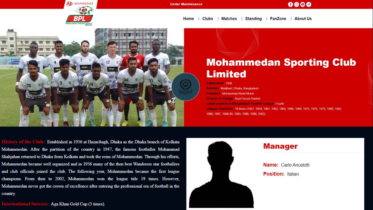 যদিও দেশের বড় দুই ক্লাব মোহামেডান স্পোর্টিং এবং বসুন্ধরা কিংসের কোচের অংশেই দেখা গেল বড় রকমের ভুল। মোহামেডানের কোচের নাম হিসেবে দেখানো হয়েছে কার্লো অ্যানচেলত্তির নাম। নিজ দেশের নামের স্থানে লেখা ‘পজিশন’। তাতে অবশ্য ইতালির নামটাই লেখা হয়েছে।