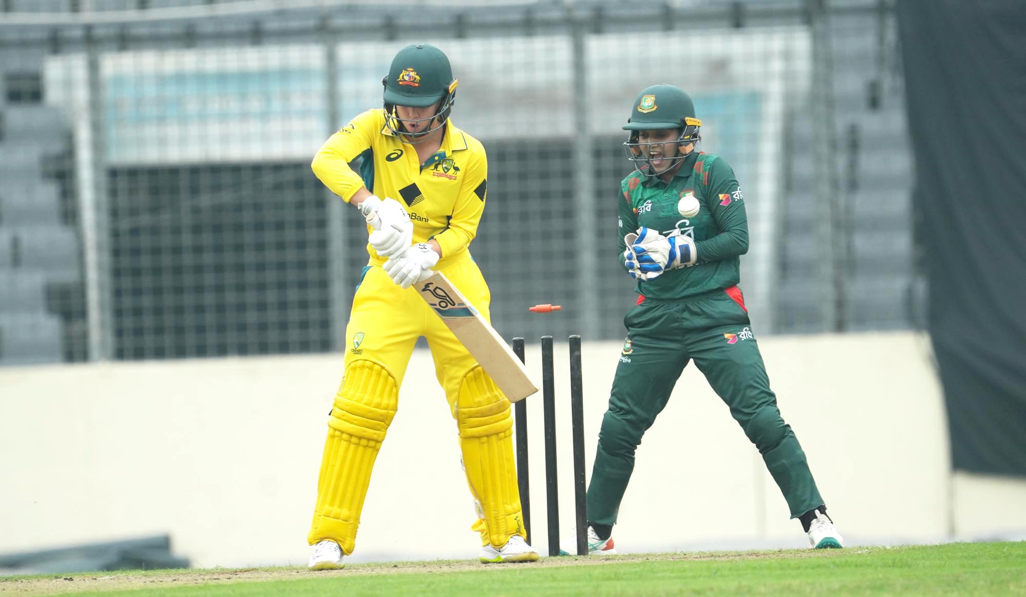 এর আগে টস হেরে প্রথমে ব্যাট করতে নেমে মিরপুরের স্পিনিং আর স্লো উইকেটে শুরুটা ভালো ছিল না অস্ট্রেলিয়ার মেয়েদেরও। অ্যালিসা হিলি, ফোবে লিচফিল্ড, বেথ মুনি কিংবা তাহলিয়া ম্যাকগ্রাদের কেউই নিজেদের চেনাতে পারেননি।
