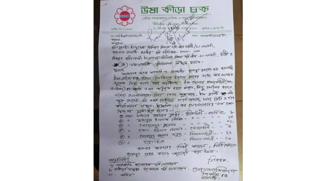 লিগ কমিটির সম্পাদক খাজা তাহের লতিফ মুন্না উষার আনীত অভিযোগের প্রেক্ষিতে বলেন, ‘তাদের একটা চিঠি দেখেছি কিন্তু এই চিঠি আনুষ্ঠানিকভাবে গ্রহণ করতে হলে তাদের ফি প্রদান করতে হবে। আপিল ফি প্রদান করে এই চিঠি দিতে হয়। এখনো আমরা আপিল ফি পাইনি।’