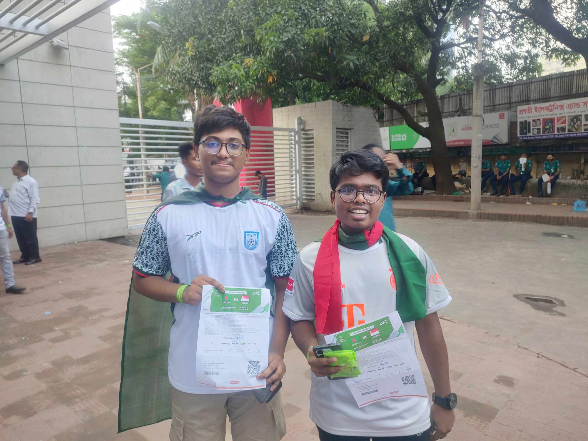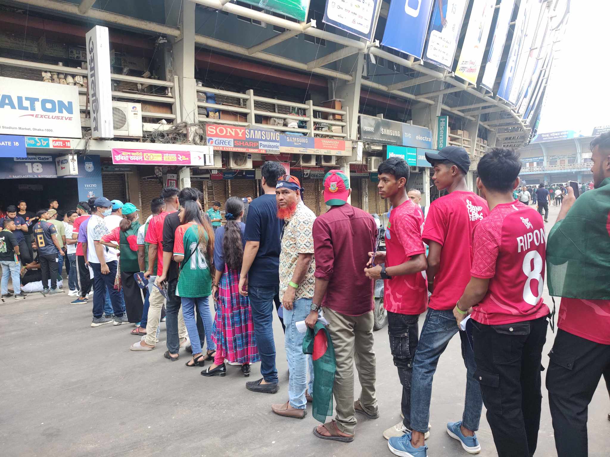 তবে মাঠে যথাসময়ে ঢুকতে পারলেও টিকিট নিয়ে পুরোনো অভিযোগগুলোই ঘুরেফিরে এলো আবার। ধানমণ্ডি থেকে আসা দুই স্কুলপড়ুয়া কিশোর তাশদীদ এবং ফারদিন জানালেন, টানা তিন দিন চেষ্টা করে তবেই ম্যাচের টিকিট পেয়েছেন দুই বন্ধু।