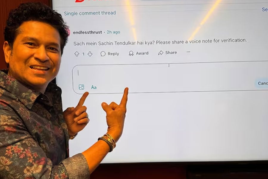 সম্প্রতি সোশ্যাল মিডিয়ায় একটি প্লাটফর্মে প্রশ্নোত্তর পর্বে উপস্থিত ছিলেন শচীন। ভক্তদের প্রশ্নের উত্তর দিচ্ছিলেন তিনি। কিন্তু এসব কি সত্যি? আদৌ কি শচীন টেন্ডুলকার স্বয়ং উপস্থিত হয়ে ভক্তদের প্রশ্নের উত্তর দিচ্ছেন? নাকি কাউকে সাজিয়ে এনে ‘বোকা’ বানানো হচ্ছে? এরকম সন্দেহ হতেই এক ব্যক্তি প্রশ্ন লিখে পাঠান, ‘আপনি কি সত্যিই শচীন? দয়া করে একটা ভয়েস নোট পাঠিয়ে প্রমাণ দিন।’