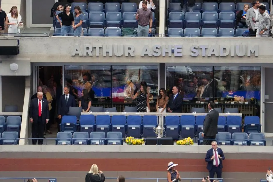 ট্রাম্প যে ‘রোলেক্স স্যুট’-এ বসেছিলেন, দ্বিতীয় সেটের পর সেখানে কিছু ভক্ত জড়ো হন। সিনার এবং আলকারাজ যখন খেলার জন্য প্রস্তুত হচ্ছেন, তখন চেয়ার আম্পায়ার জেমস কিয়োথাভংকে বলতে হয়, ‘দয়া করে আপনারা আসন গ্রহণ করুন’। তৃতীয় সেটে আলকারাজ যখন ৩-০ গেমে এগিয়ে ছিলেন তখন ট্রাম্প একবার স্যুটের ভিতরে যান। আলকারাজের চ্যাম্পিয়ন হওয়া যখন সময়ের অপেক্ষা, তখন চতুর্থ সেটের সময় তিনি আবার বক্সে আসেন।
