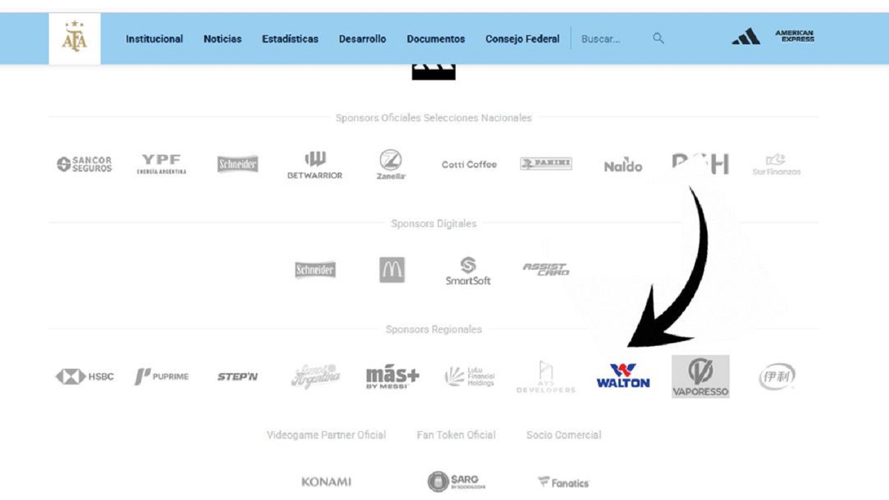 আর্জেন্টিনা ফুটবল অ্যাসোসিয়েশনের ওয়েবসাইটে ওয়ালটনের লোগো!