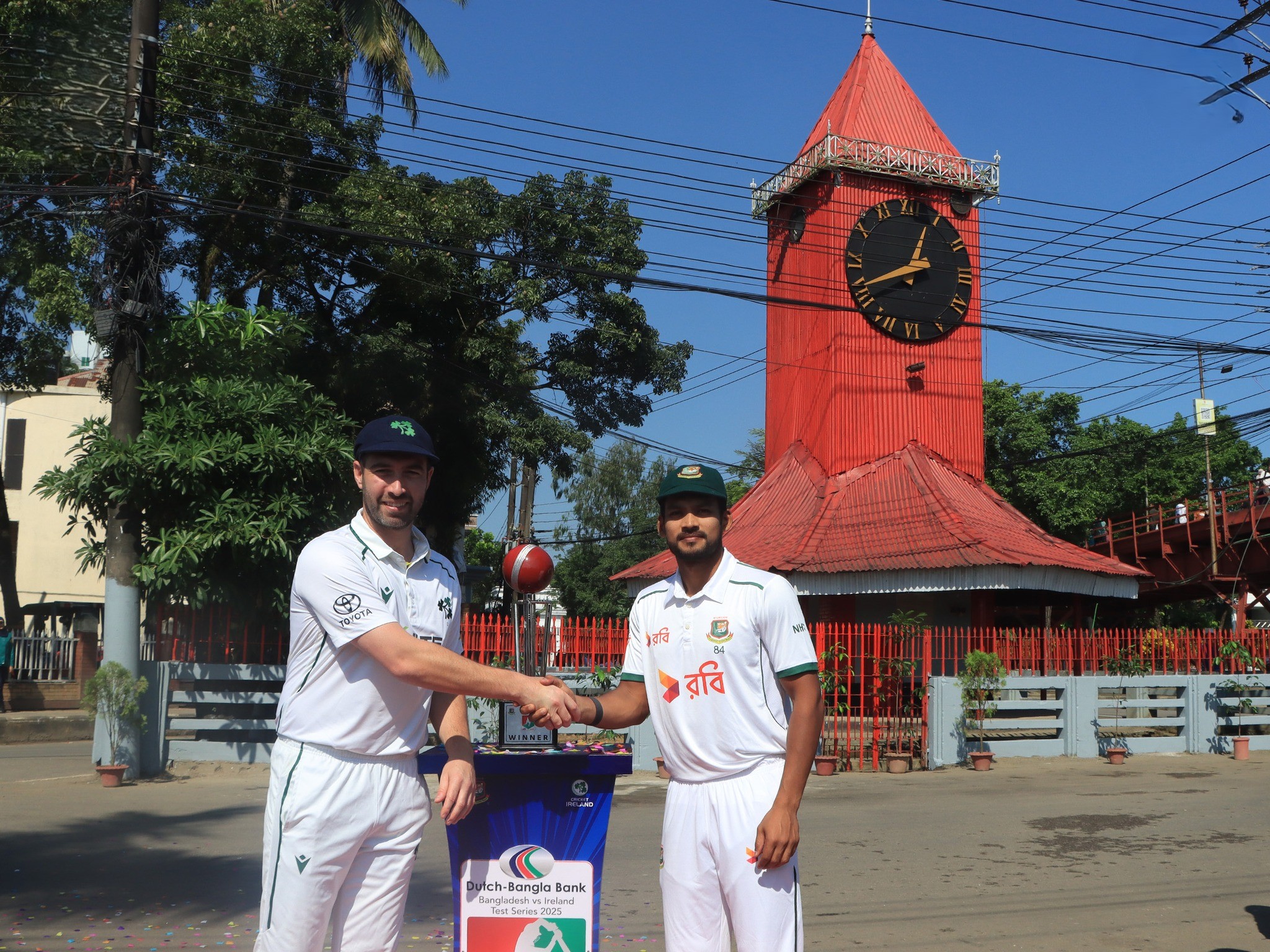 আজ রবিবার (০৯ অক্টোবর) দুপুরে টেস্ট সিরিজের ট্রফি উন্মোচন করেন বাংলাদেশ দলের অধিনায়ক নাজমুল হোসেন শান্ত এবং আয়ারল্যান্ডের অধিনায়ক এন্ডু বার্লবির্নি। এ সময় দুই অধিনায়ক ছাড়াও বিসিবির কর্মকর্তারা সেখানে উপস্থিত ছিলেন।