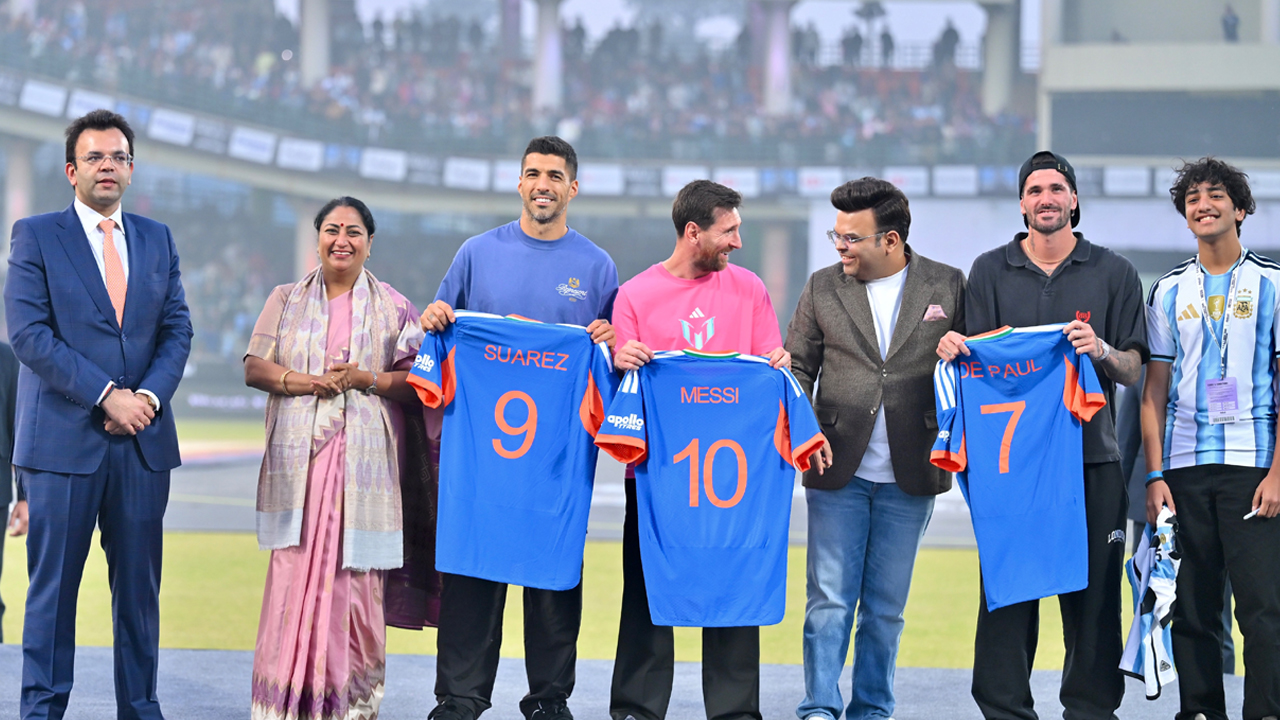 শেষ দিকে মেসির হাতে আইসিসি প্রধান জয় শাহ তুলে দেন টি-টোয়েন্টি বিশ্বকাপ জয়ী ভারতীয় দলের সই করা ব্যাট ও জার্সি। মেসিকে ১০ নম্বর জার্সি দেন, সুয়ারেজ ৯ ও ডি পলকে ৭ নম্বর জার্সি পান।