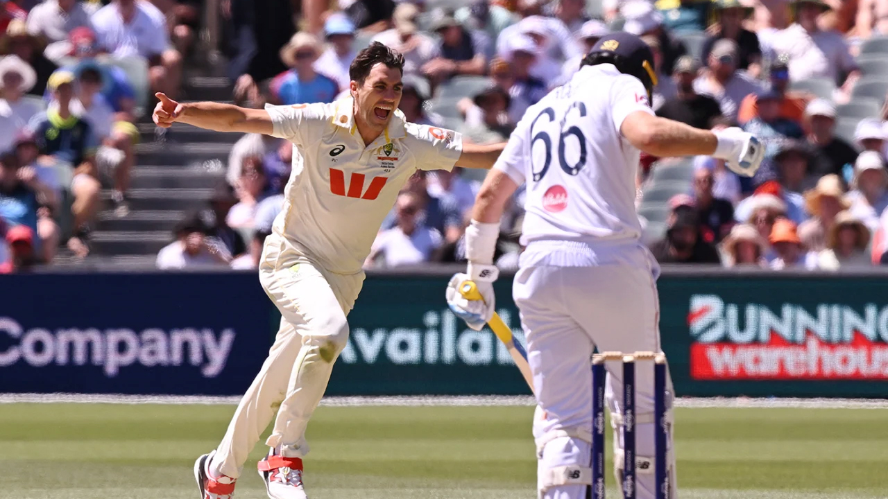 ক্যারি আউট হওয়ার ২০ রানের ব্যবধানে বাকি ৪ উইকেট হারায় অস্ট্রেলিয়া। তবে ততক্ষণে তারা ইংলিশদের জন্য প্রায় অসম্ভব লক্ষ্য দাঁড়িয়ে করে ফেলে। বড় লক্ষ্য তাড়ায় নেমে দলীয় মাত্র ৪ রানেই ওপেনার বেন ডাকেটকে (৪) হারায় ইংল্যান্ড। ওয়ান ডাউনে নামা ওলি পোপও ১৭ রান করে আউট হয়ে যান। তৃতীয় উইকেটে ৭৮ রানের জুটি গড়েন আরেক ওপেনার জ্যাক ক্রাউলি ও জো রুট। ৬৩ বলে ৩৯ রান করা রুটকে ফিরিয়ে সেই জুটি ভাঙেন কামিন্স। ৫৬ বলে ৩০ রান করেন হ্যারি ব্রুক।