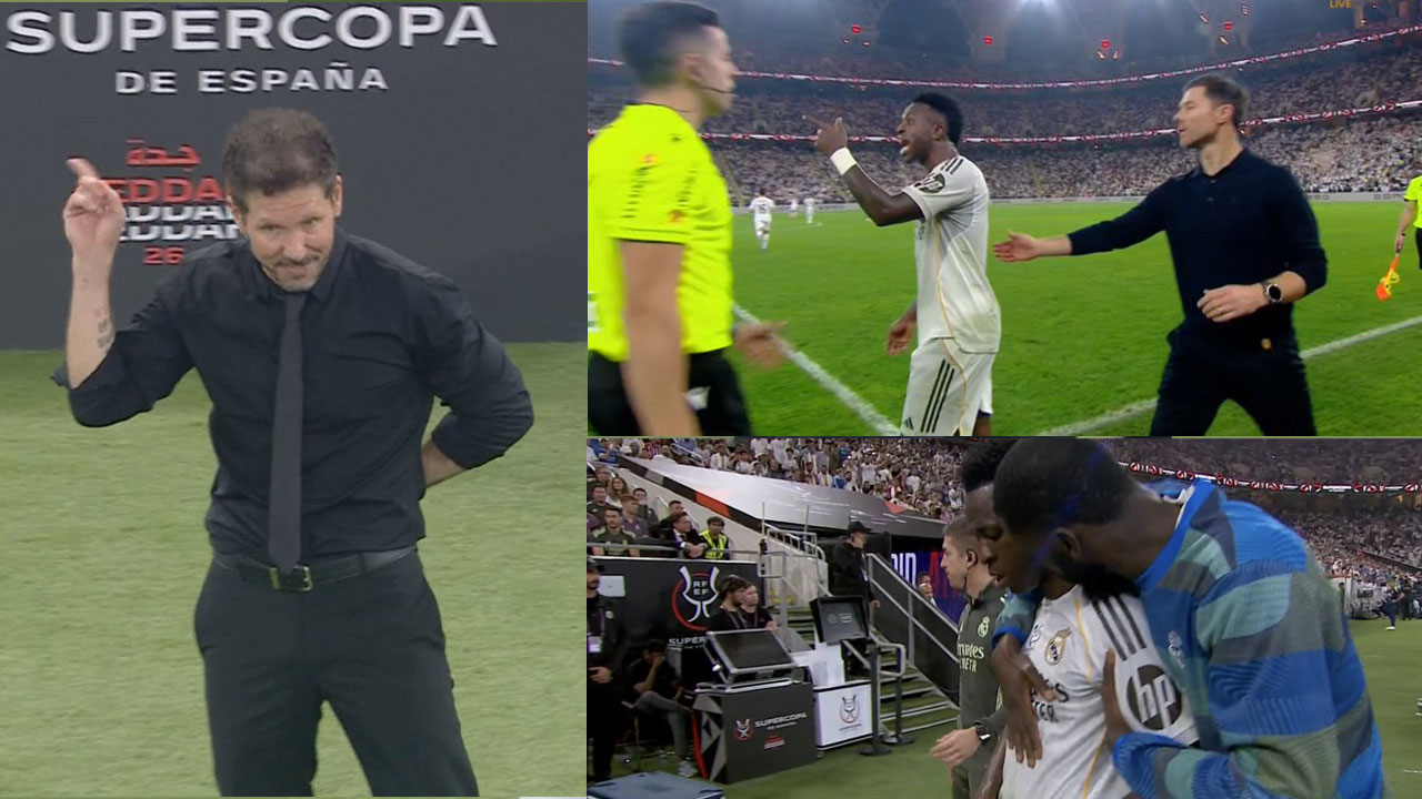 টিভি ফুটেজে দেখা গেছে, টাচলাইনে দাঁড়িয়ে সিমিওনে ভিনিসিয়ুসকে বারবার বলছিলেন যে রিয়াল প্রেসিডেন্ট ফ্লোরেন্তিনো পেরেজ তাকে ‘ছাঁটাই করতে যাচ্ছেন’। এমনকি ভিনিসিয়ুস যখন মাঠ থেকে বদলি হয়ে উঠে যাচ্ছিলেন, তখন সিমিওনে দর্শকদের দুয়োধ্বনির দিকে ইঙ্গিত করে অঙ্গভঙ্গি করেন। অ্যাটলেটিকো কোচের আচরণ সম্পর্কে প্রশ্ন করা হলে আলোনসো বলেন, ‘আমি এটা পছন্দ করিনি। দেখলাম 'চোলো' (সিমিওনে) তাকে কিছু একটা বলছেন। আমার কাছে মনে হয়, এই ধরনের বিষয়গুলো একজন সহকর্মীর প্রতি সম্মানের সীমা লঙ্ঘন করে।’ পরে সংবাদ সম্মেলনেও এই প্রসঙ্গে কথা বলেন রিয়াল কোচ, ‘আমি প্রতিপক্ষ দলের খেলোয়াড়দের প্রতি শ্রদ্ধাশীল থাকার চেষ্টা করি। তিনি যা বলেছেন তা শোনার পর আমার আরও খারাপ লেগেছে। এটি একজন ভালো ক্রীড়াবিদের উদাহরণ হতে পারে না। প্রতিপক্ষের প্রতি শ্রদ্ধা থাকতে হবে। সবকিছুর একটা সীমা থাকে।’
