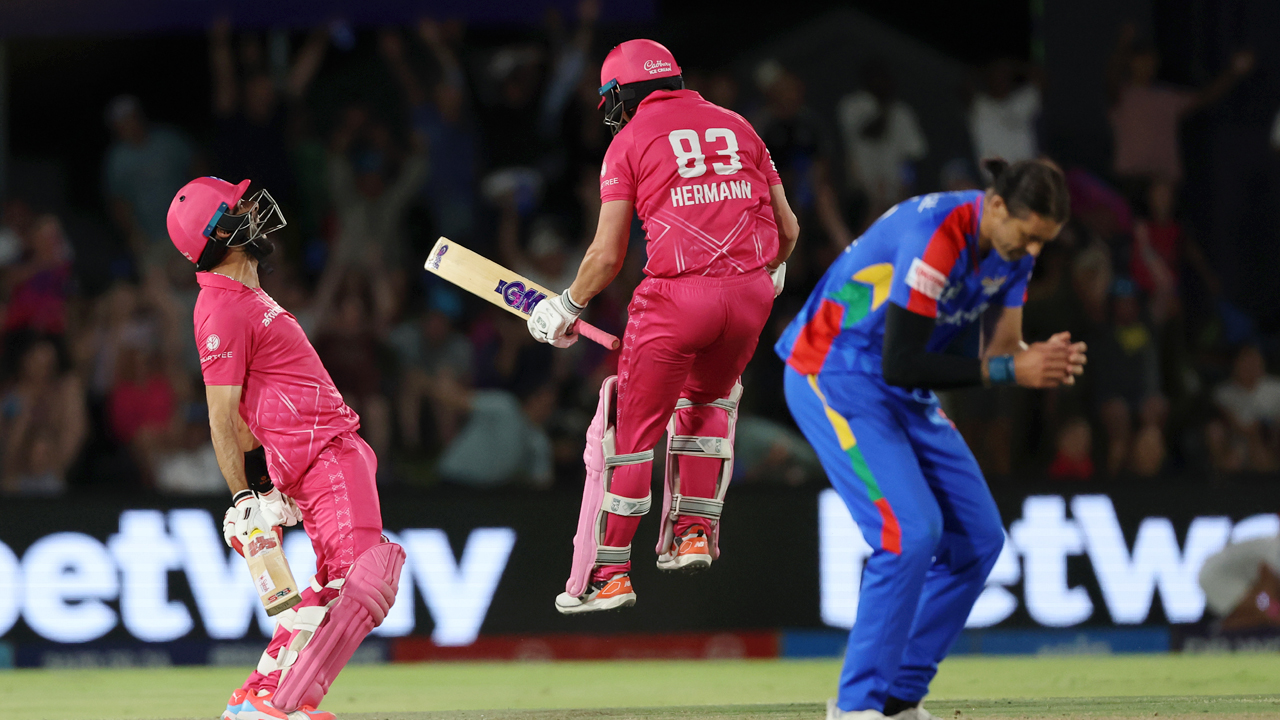১৯তম ওভারে পার্ল ১৩ রান তোলার পর শেষ ওভারে আর ৬ রান প্রয়োজন ছিল। তৃতীয় ও চতুর্থ বল ডট দেওয়ার পর ২ বলে তাদের দরকার পড়ে ৩ রান। এরপর আসে ১ রান। ডেভিড ভিসার শেষ ডেলিভারিতে লম্বা ছয় হাঁকিয়ে সিকান্দার রাজা উল্লাসে মাতেন। ১৩ বলে ২টি করে চার-ছক্কায় ২৭ রান করেন জিম্বাবুইয়ান তারকা। ডারবানের পক্ষে দুটি উইকেট নেন ইথান বশ।