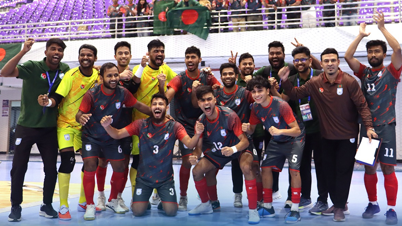 থাইল্যান্ডের ব্যাংককে চলছে সাফ নারী ও পুরুষ ফুটসাল টুর্নামেন্ট। আজ বাংলাদেশ পুরুষ দল খেলেছে তাদের টুর্নামেন্টের চতুর্থ ম্যাচ। ব্যাংককে অনুষ্ঠিত ম্যাচে বাংলাদেশ ৫-১ গোলে পরাজিত করে শ্রীলঙ্কাকে।