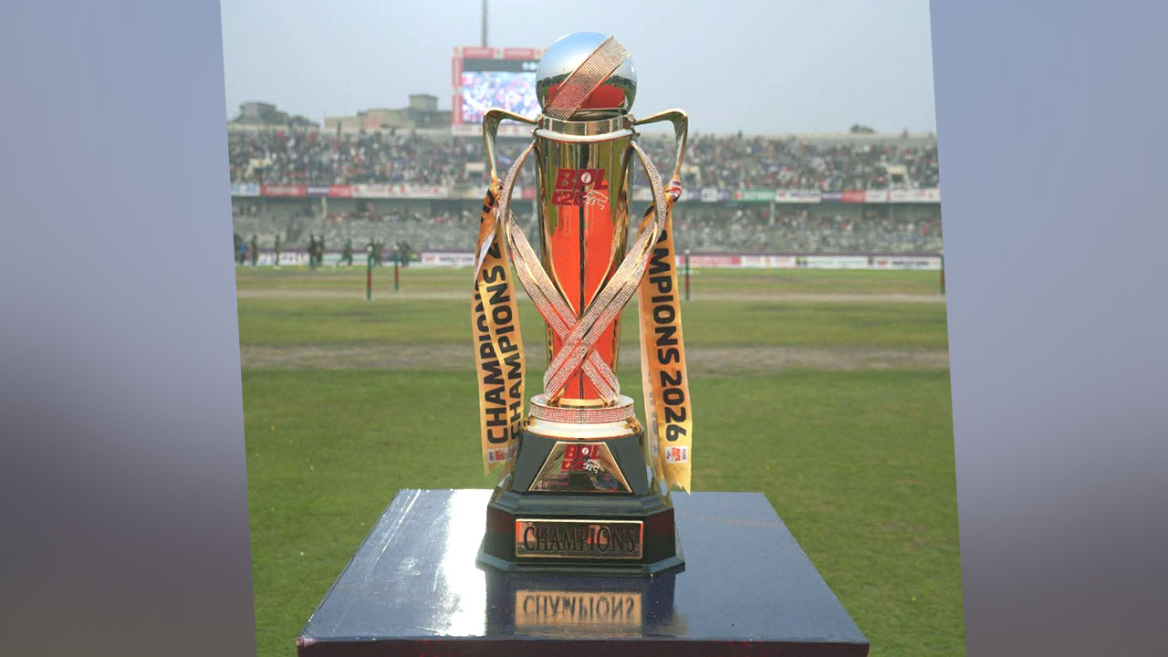 এবারের বিপিএল ট্রফি অন্য চেহারায়। দুবাইয়ে সুনিপুণ ডিজাইনে এবার বানানো হয়েছে ২৫ লাখ টাকার হীরাখচিত ট্রফি। মাঠে তার আগমনও ঘটল অন্যভাবে। আজ (শুক্রবার) সন্ধ্যা ৬টায় মিরপুর শের-ই বাংলা স্টেডিয়ামে চট্টগ্রাম রয়্যালস ও রাজশাহী ওয়ারিয়র্স ফাইনালে মুখোমুখি হবে। তার আগে ট্রফি নিয়ে ফটোসেশন করলেন দুই অধিনায়ক শেখ মেহেদী হাসান ও নাজমুল হোসেন শান্ত।