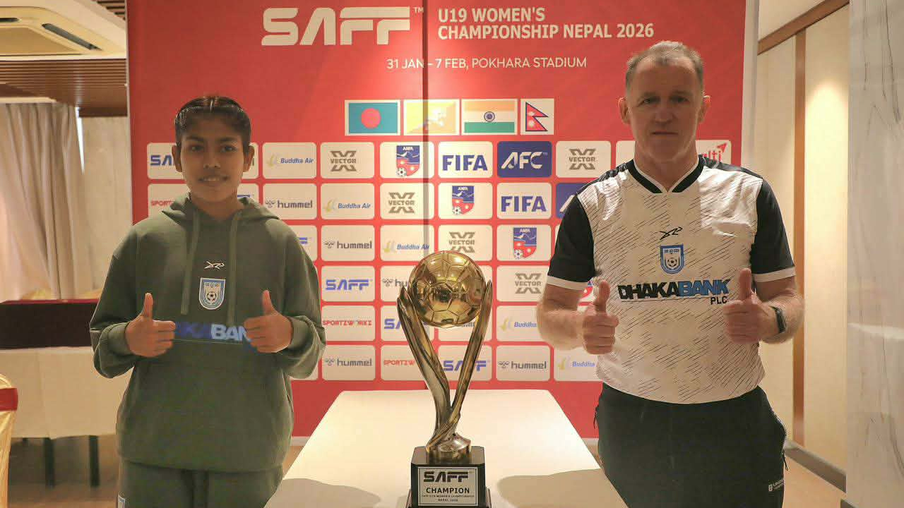 বাংলাদেশ অ-১৯ দল আজই প্রথম অনুশীলন করেছে। ঢাকায় নারী ফুটবল লিগের মাঝপথে অ-১৯ দল গঠন করা হয়েছে। গত পরশু কাঠমান্ডু যাওয়ার পর গতকাল পোখরায় পৌছায়। ফ্লাইট বিড়ম্বনায় কাল অনুশীলন হয়নি। আগামীকাল বাংলাদেশ দলের প্রথম ম্যাচ ভুটানের বিপক্ষে। ভারত, বাংলাদেশ, ভুটান, নেপাল প্রত্যেকে তিনটি করে ম্যাচ খেলবে। শীর্ষ দুই পয়েন্টধারী দল ৭ ফেব্রুয়ারী ফাইনাল খেলবে।