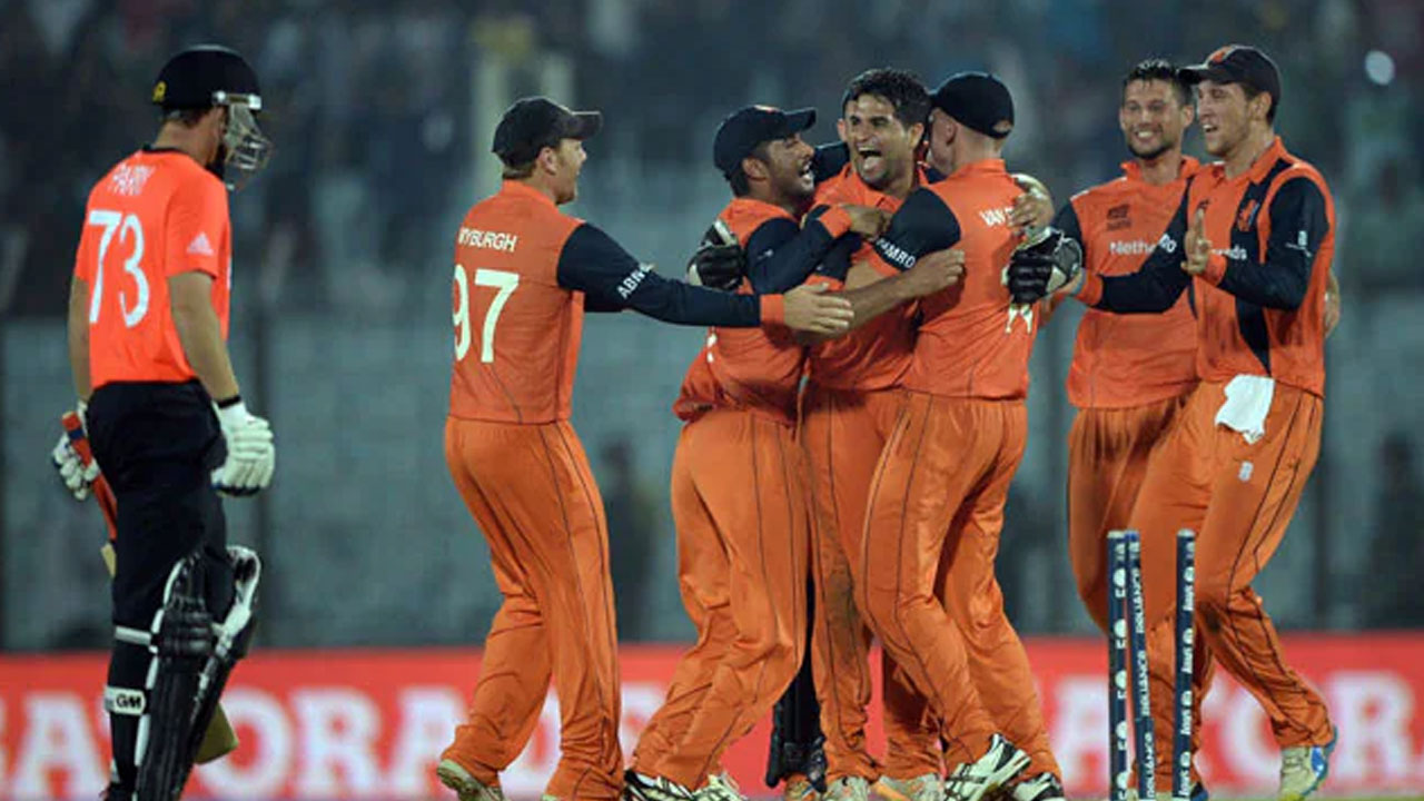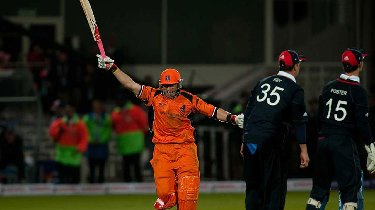 জবাবে নেদারল্যান্ডস শেষ বলে লক্ষ্য ছোঁয়। টম ডি গ্রুথ ৪৯ রান করেন এবং পুরো ব্যাটিং লাইন আপ ছোট ছোট গুরুত্বপূর্ণ অবদান রাখেন। জেমস অ্যান্ডারসনের ২৩ রান খরচায় ৩ উইকেট বিফলে গেছে। ডাচরা পেয়ে যায় ঐতিহাসিক জয়।