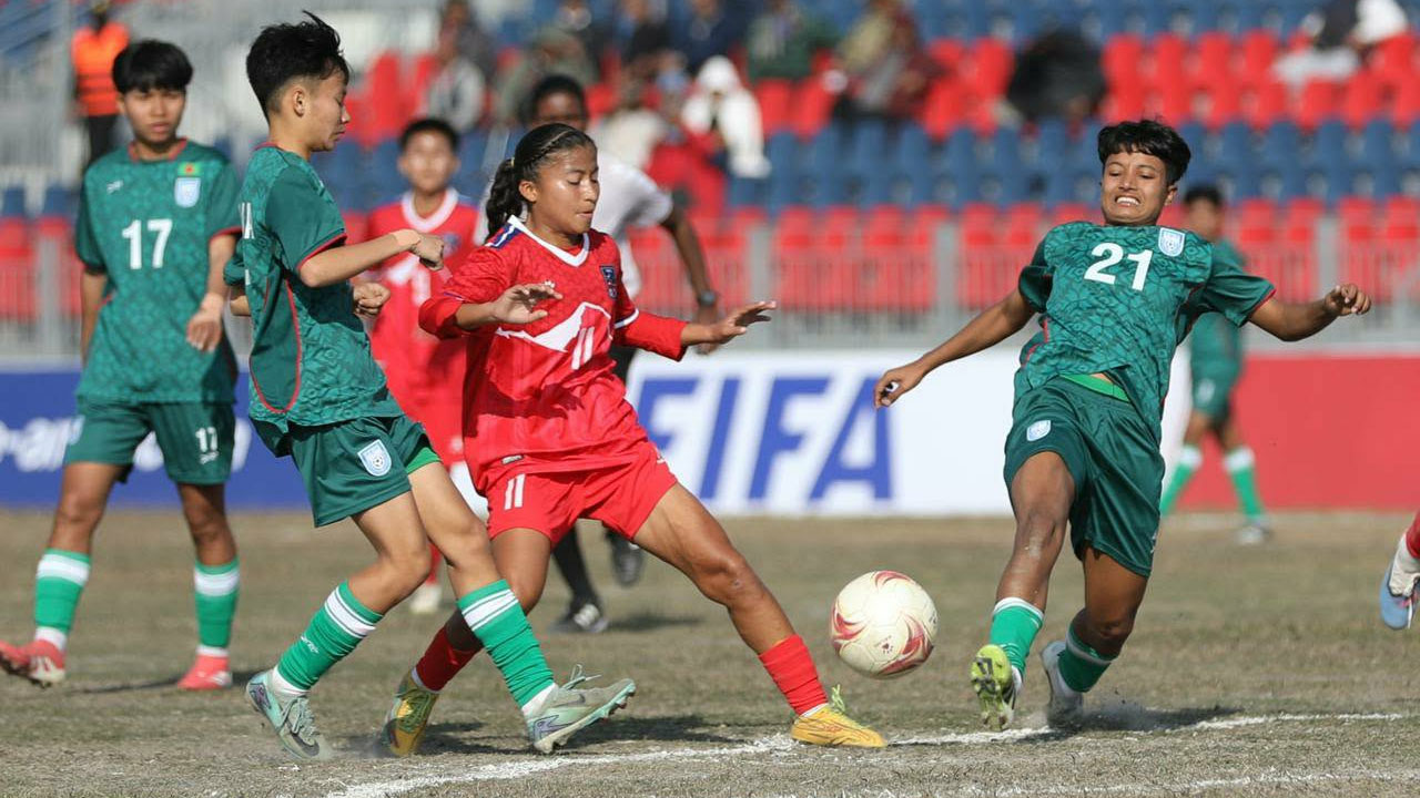 আজ দিনের প্রথম ম্যাচে ভারত ৮-০ গোলে ভুটানকে হারিয়ে ফাইনালে উঠে। বাংলাদেশের ফাইনাল প্রায় নিশ্চিত হওয়ায় কোচ পিটার বাটলার একাদশে পরিবর্তন আনেন। তবে স্বাগতিক নেপালের বিপক্ষে গোল পেতে সময় লাগেনি। ম্যাচের তৃতীয় মিনিটে মামনি চাকমার কর্ণার নেপালের গোলরক্ষক পোস্ট থেকে বেরিয়ে এসে গ্রিপে নিতে পারেননি। বক্সের উপর থাকা প্রতিমা মুন্ডা প্লেসিং করে গোল করেন।