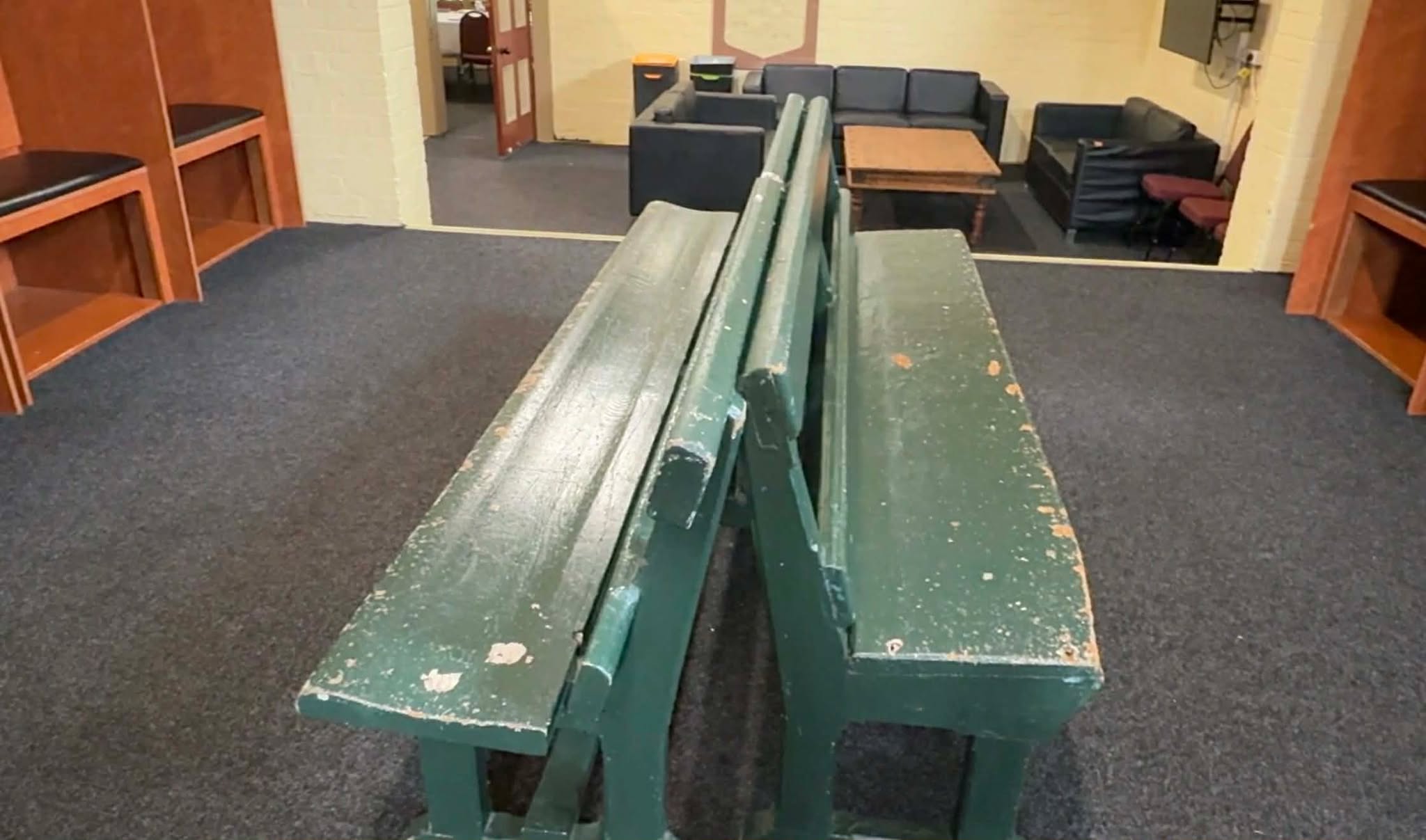 ড্রেসিংরুমে ১৮৮৬ সালের বেঞ্চ